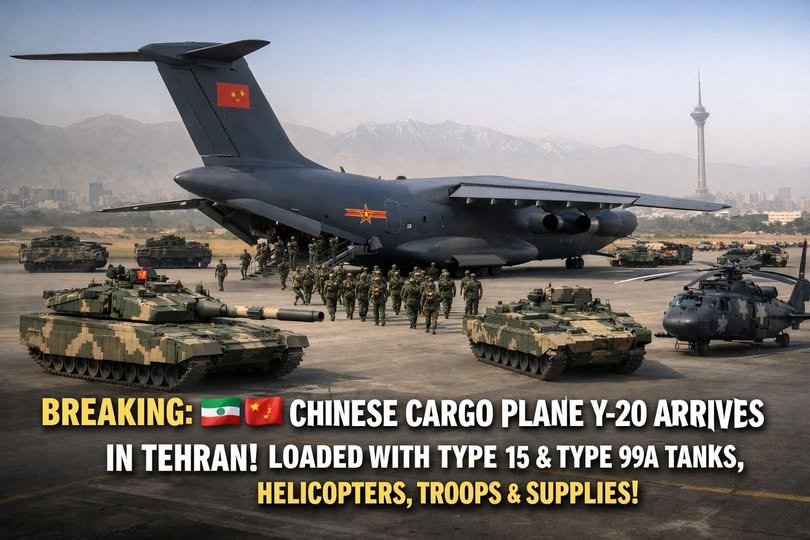 Reports circulating across geopolitical and defense analysis circles claim that Chinese strategic airlift aircraft have arrived in Tehran, bringing with them heavy military equipment, troops, and supplies. According to these claims, the aircraft involved is the Xi’an Y-20, China’s largest domestically produced military cargo plane and a key component of the country’s long-range logistical capability.